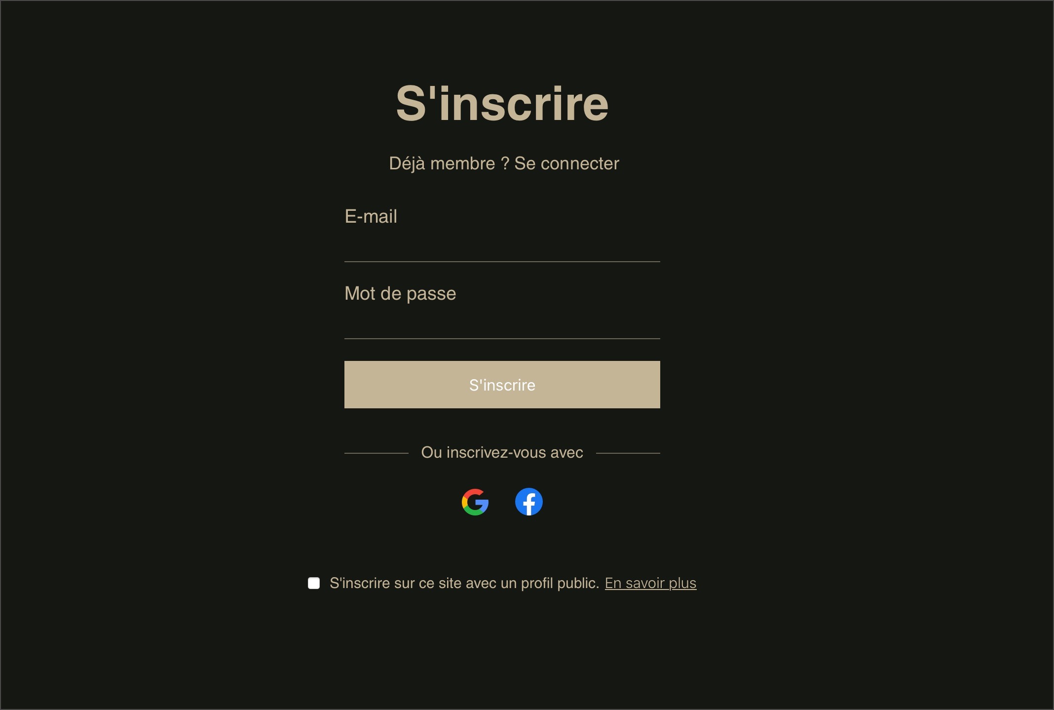 - s’inscrire avec vos comptes en ligne (Google ou Facebook) ;
